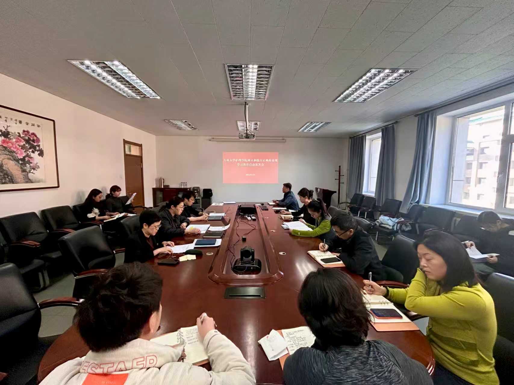 会上,韩月波领学习近平总书记关于树立和践行正确政绩观的重要论述,传达校党委书记田辉在吉林大学树立和践行正确政绩观学习教育启动部署会上的讲话精神。副院长彭歆传达中央党的建设工作领导小组会议精神,党委副书记兼副院长、纪委书记密佳音介绍《吉林大学开展树立和践行正确政绩观学习教育实施方案》。